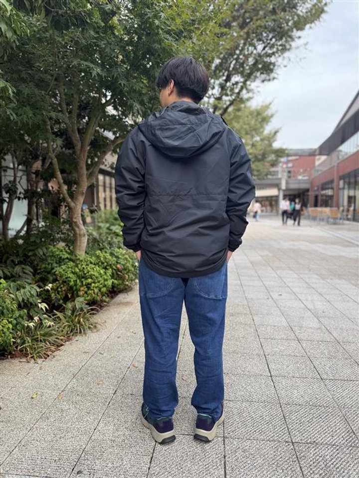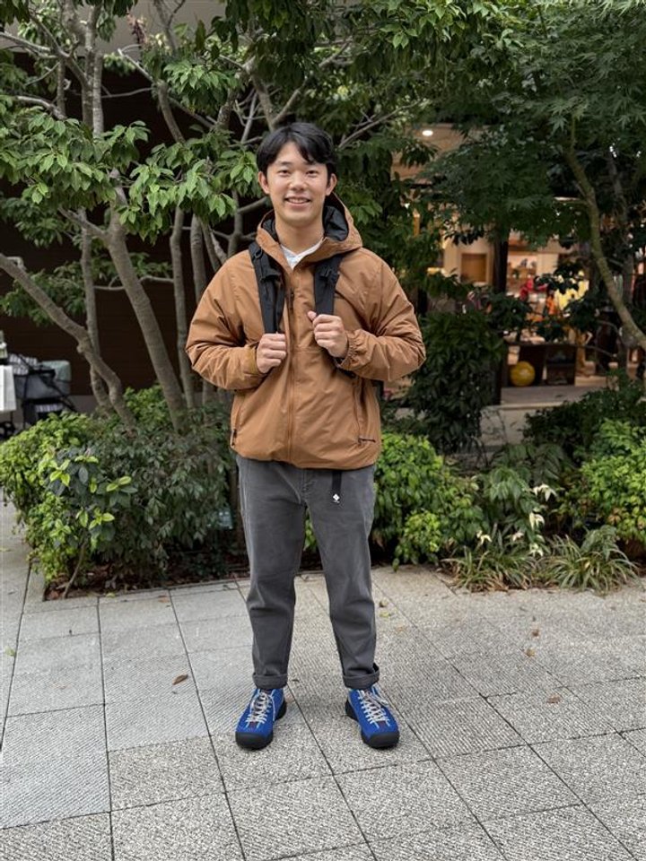 マウンテンパーカーが主役だからこそ、他アイテムは引き算を意識します。